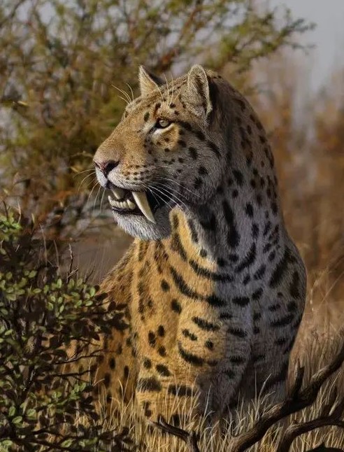 巨頦虎屬于貓科中的劍齒虎亞科,是劍齒虎中最早被研究的類型。1824年,法國古生物學泰斗居維葉根據一些上犬齒化石為其定名,當時還以為是某種熊類。過去曾將其譯為“巨劍齒虎”,但它們其實是劍齒家族中的小個子,只是頭和劍齒與身體相比顯得很大,因此現在的名稱——巨頦虎更為名副其實。